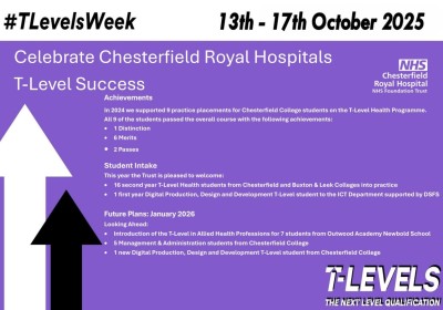 The Trust welcomed our first T Level Health students from Chesterfield College in June 2024 for their induction. The students will be returning in September for supervised practice placements on our wards.